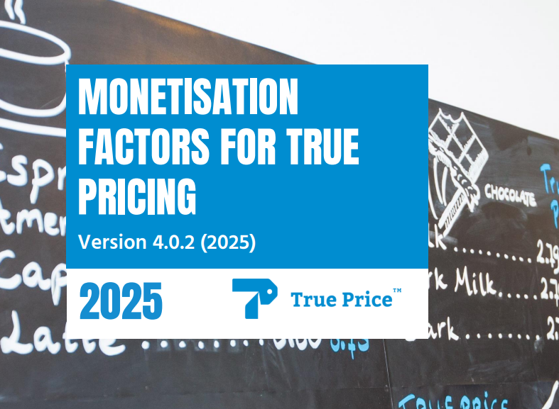 One publication we update annually is the Monetisation Factors for True Pricing: a set of “shadow prices” used to express externalities in euros. Part of the year-on-year change is simply inflation adjustment (you don’t want to report impacts in “old Euros”), but we also update values based on the latest scientific and economic insights. The biggest change this year is the climate. Our climate monetisation factor almost doubled: from €163 to €312 per tonne of CO2-eq.